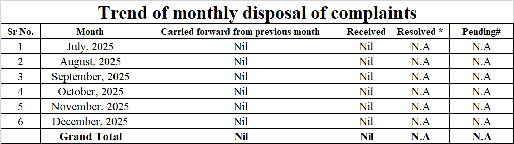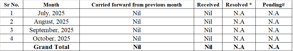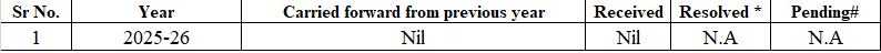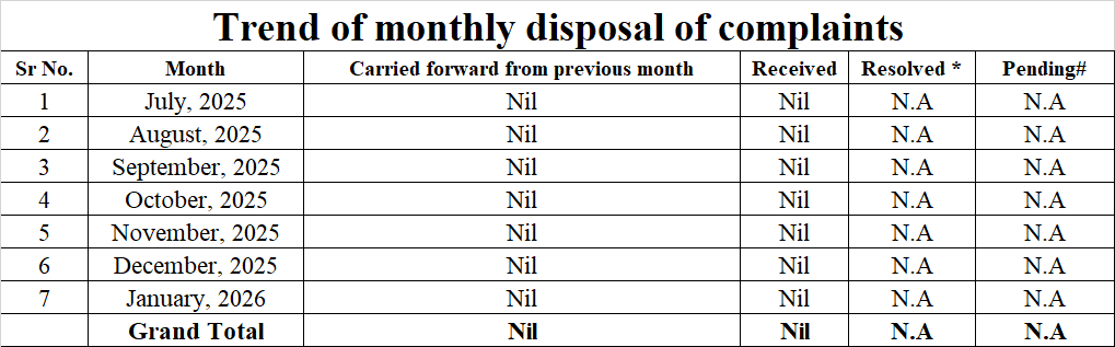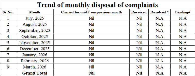 * Inclusive of complaints of previous months resolved in the current Year. # Inclusive of complaints pending as on the last day of the Year.